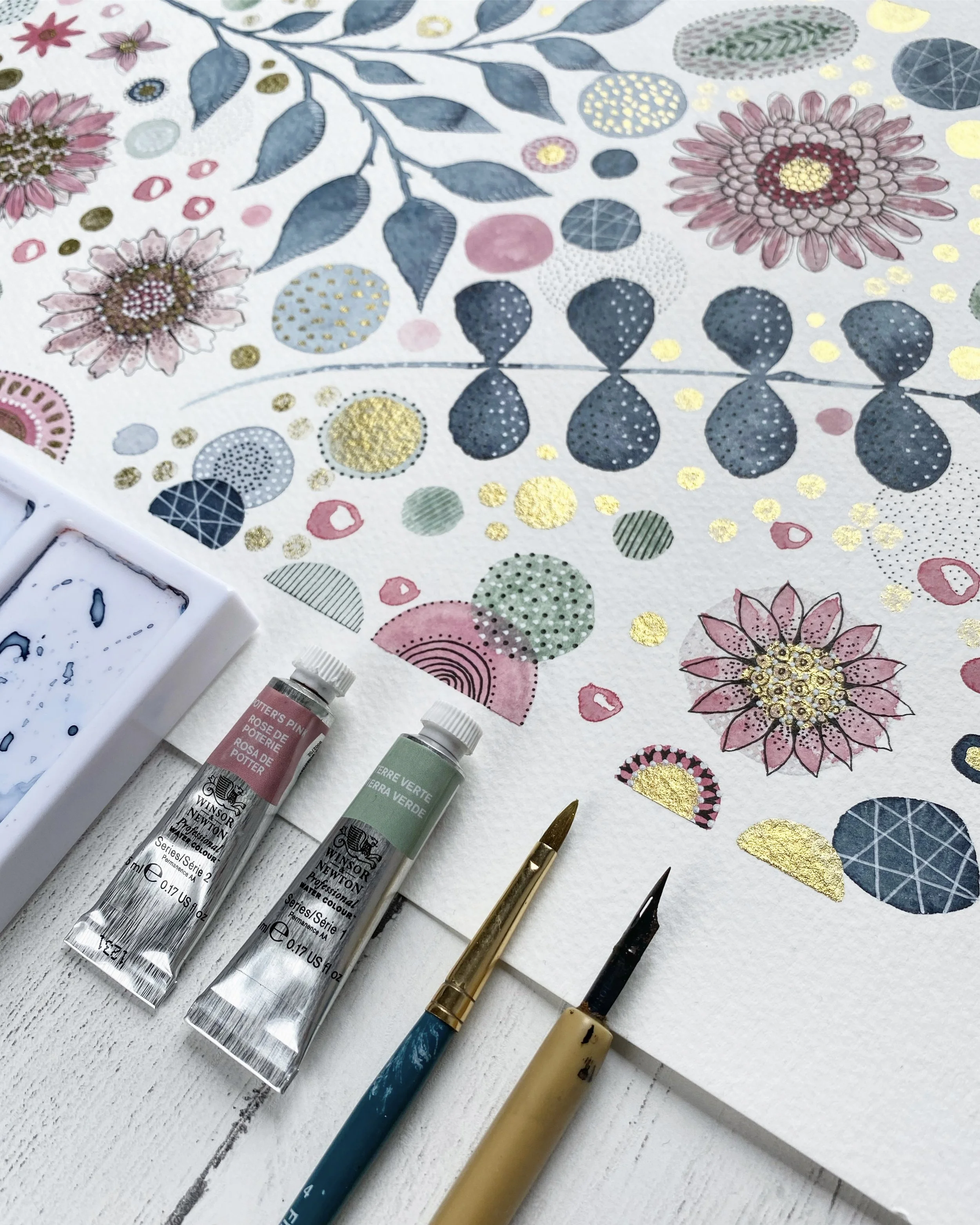 We were delighted to meet Kate Rebecca Leach, an artist and illustrator based in Bushey (just down the road from us!). Her original artwork and giclée prints feature beautiful watercolor techniques with metallic details.